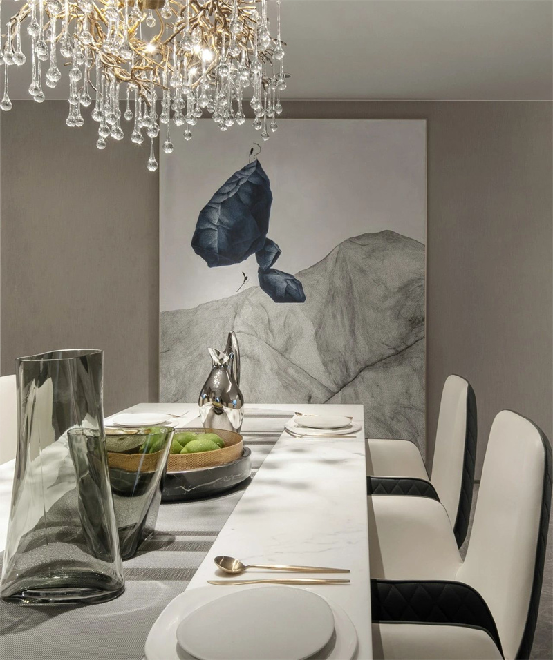 设计师将意大利经典的设计美学与现代简约相结合,通过简洁的线条、柔和的中性色调,精致的材质细节,营造出一种低调却彰显主人品味的奢华感。